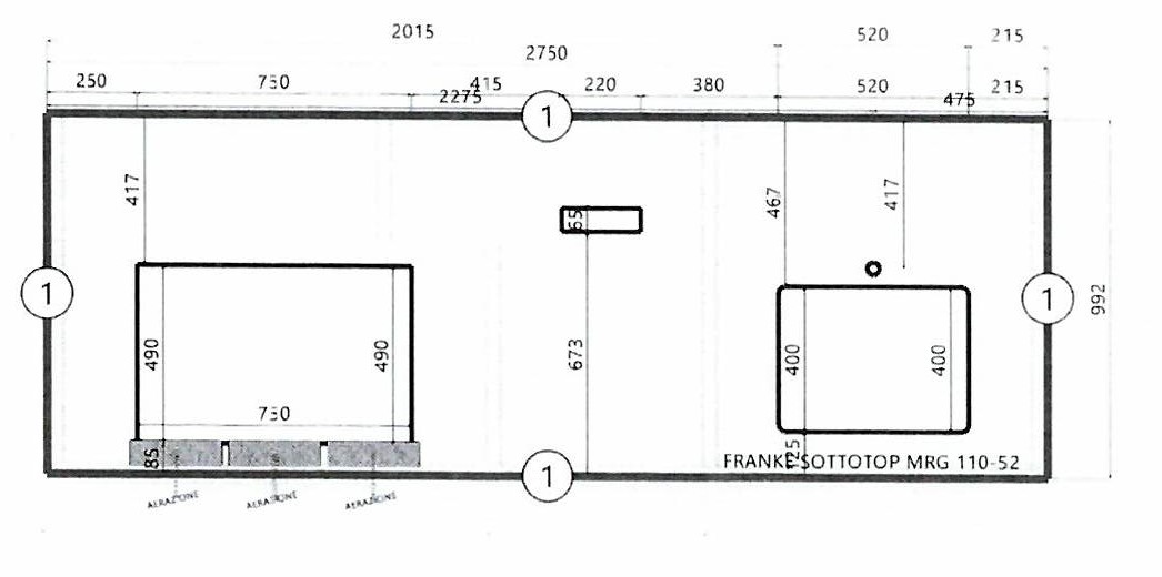 - COLONNE: L.156 cm, prof. 63,8 H.210 (+ zoccolo H.8 cm)