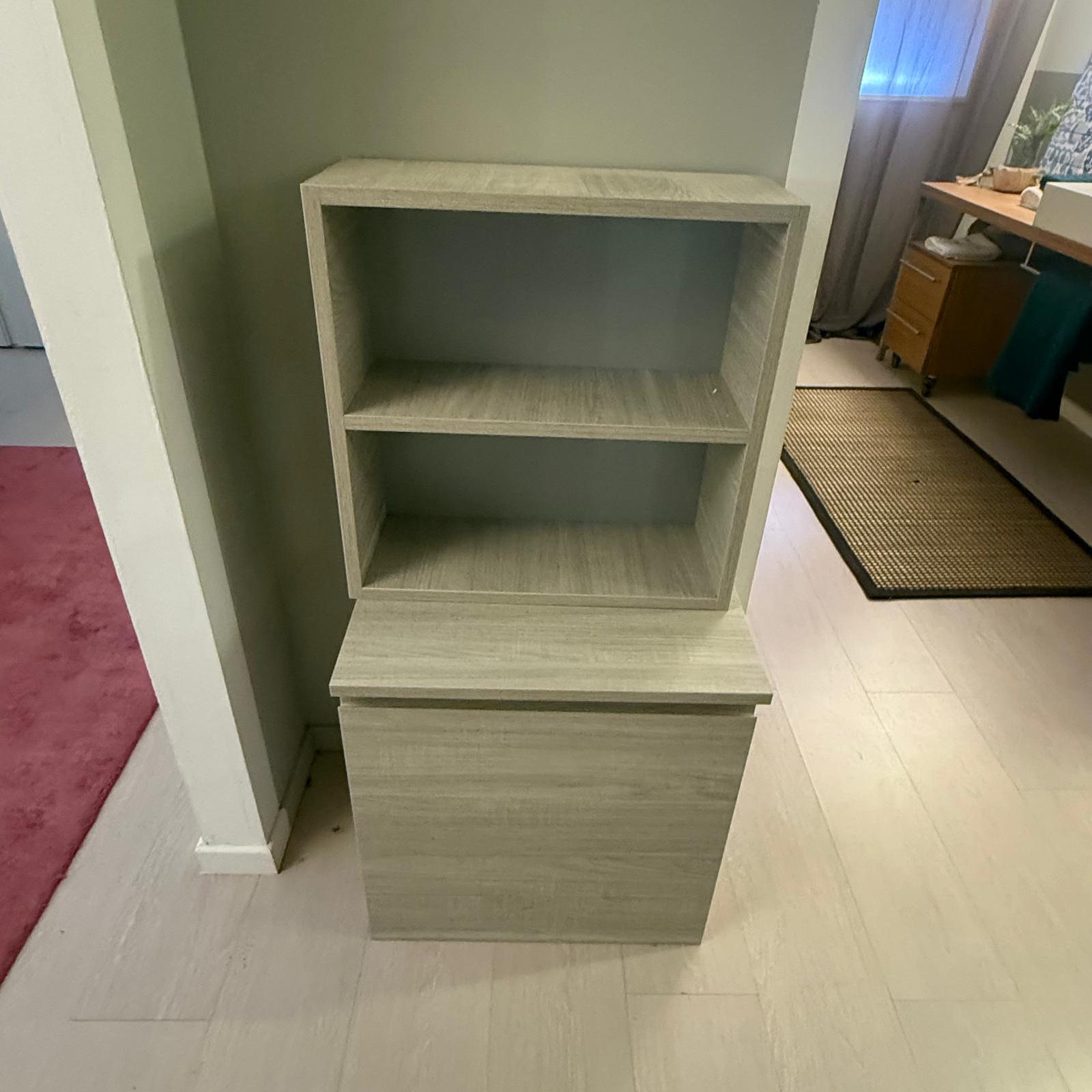 Mobile contenitivo composto da pensile da appendere a muro con separato un modulo con vano a giorno.