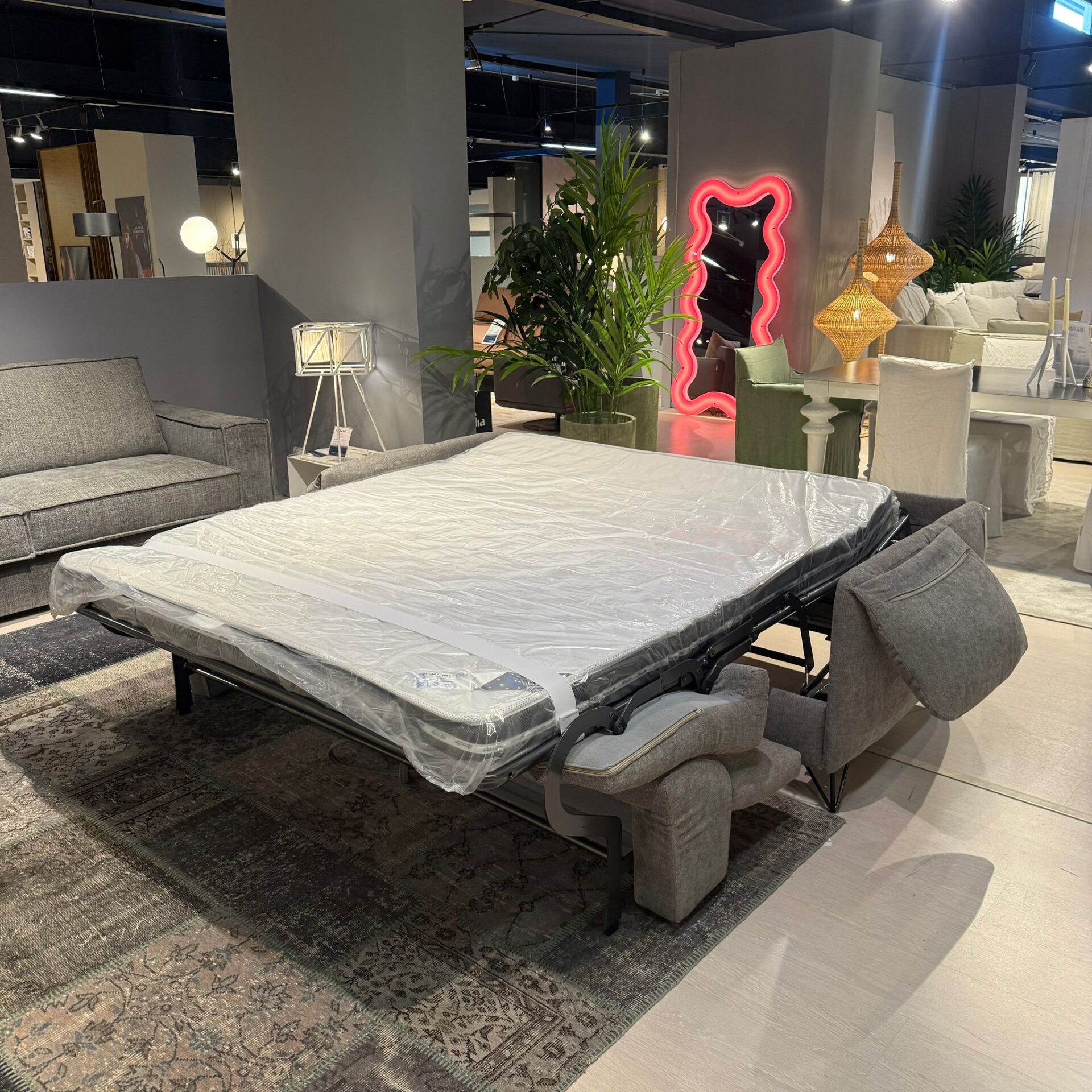 Divano letto modello Victor Comfort Maxi con materasso di serie New Moon 160×192 H.13 cm. in tessuto Yucatan grigio cat.A